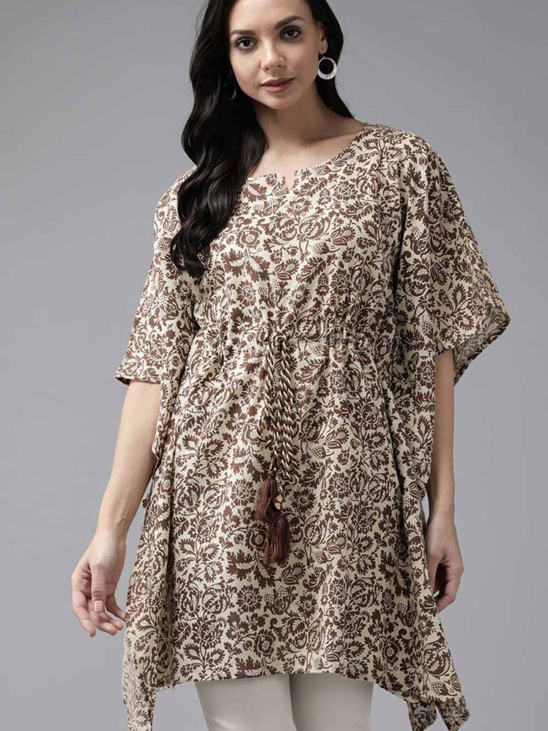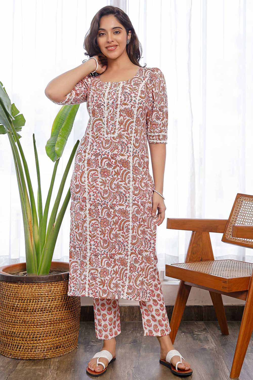 Makeover your traditional wardrobe with this Pheeta kurta set. This printed kurta is made of a breathable material and has a straight form. a regular round neck. and three-quarter normal sleeves. It also has ethnic designs. The elastic waistline and slip-on closure of the floral butti patterned trousers make them ideal for everyday leisure.