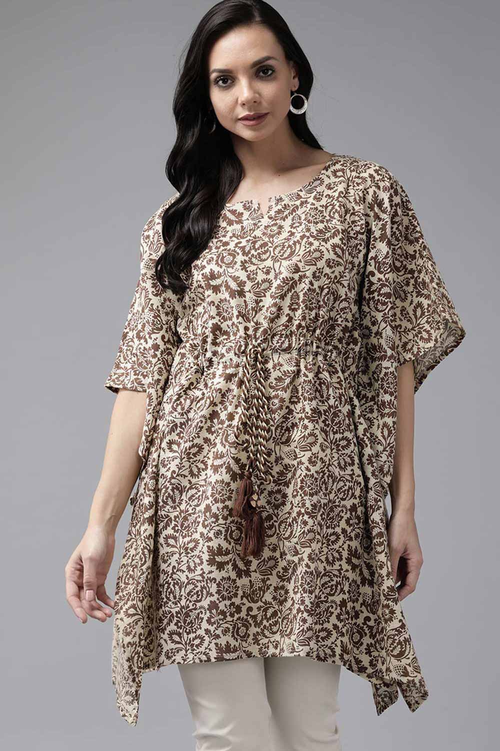 Be the first to review “Pure Cotton Floral Printed Kurta Top in Brown”