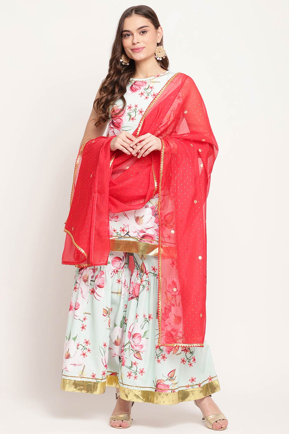 Mint Green printed Kurti with Sharara with dupatta.