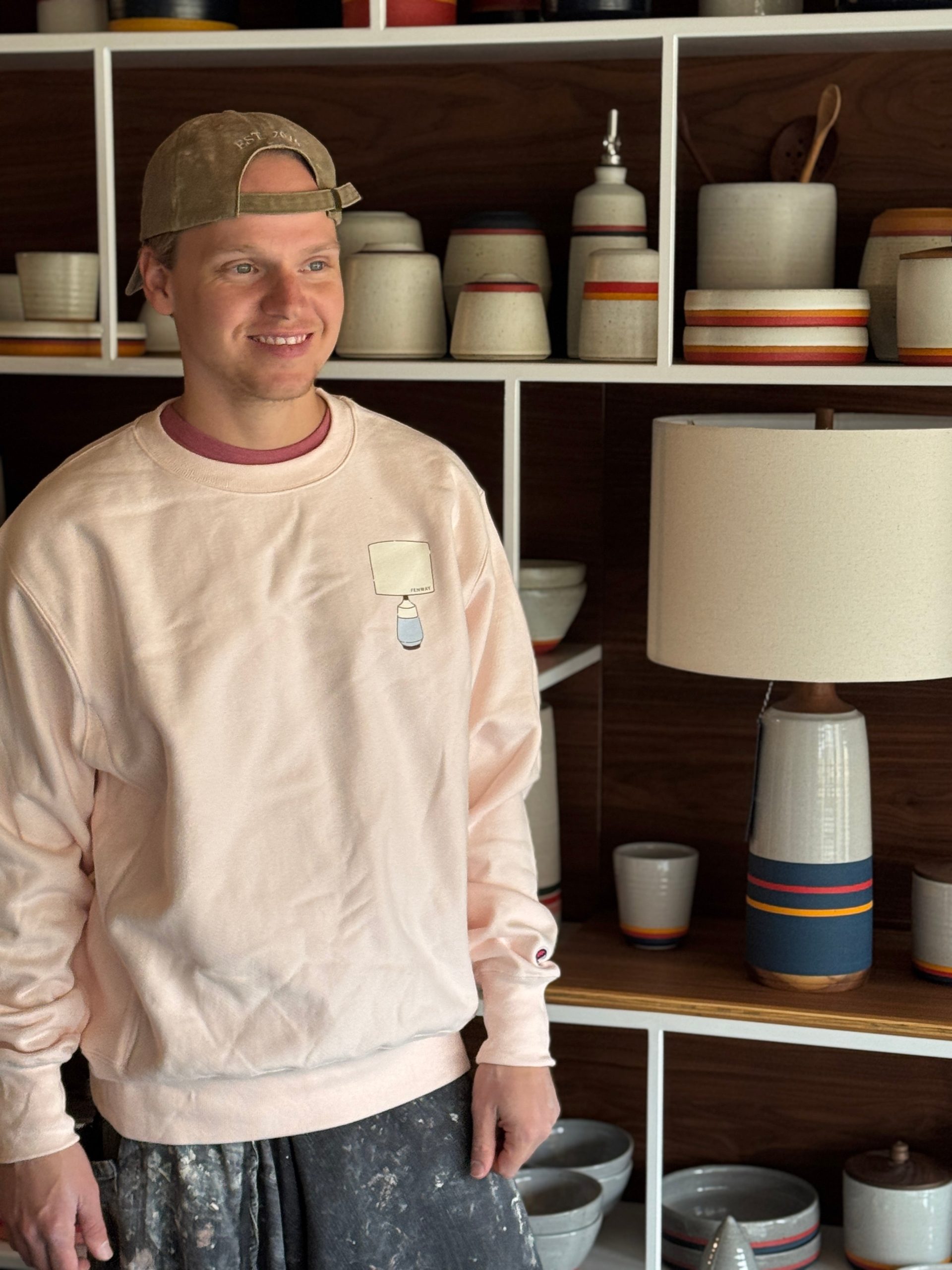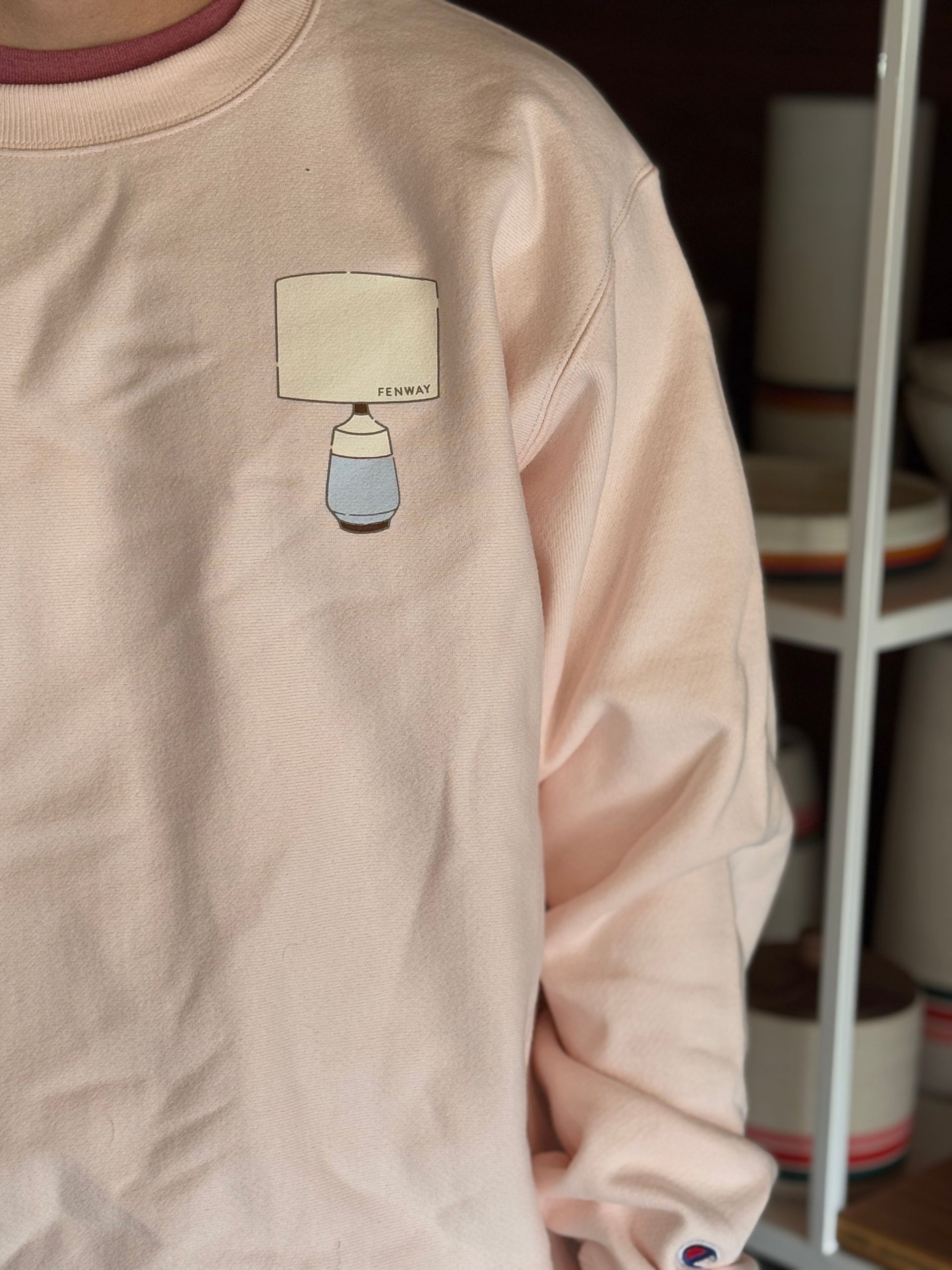 Our nicest sweatshirt in blush featuring our new lamp logo. The most wearable crewneck around – made with 80/20 blend from Champion. If you know, you know.
