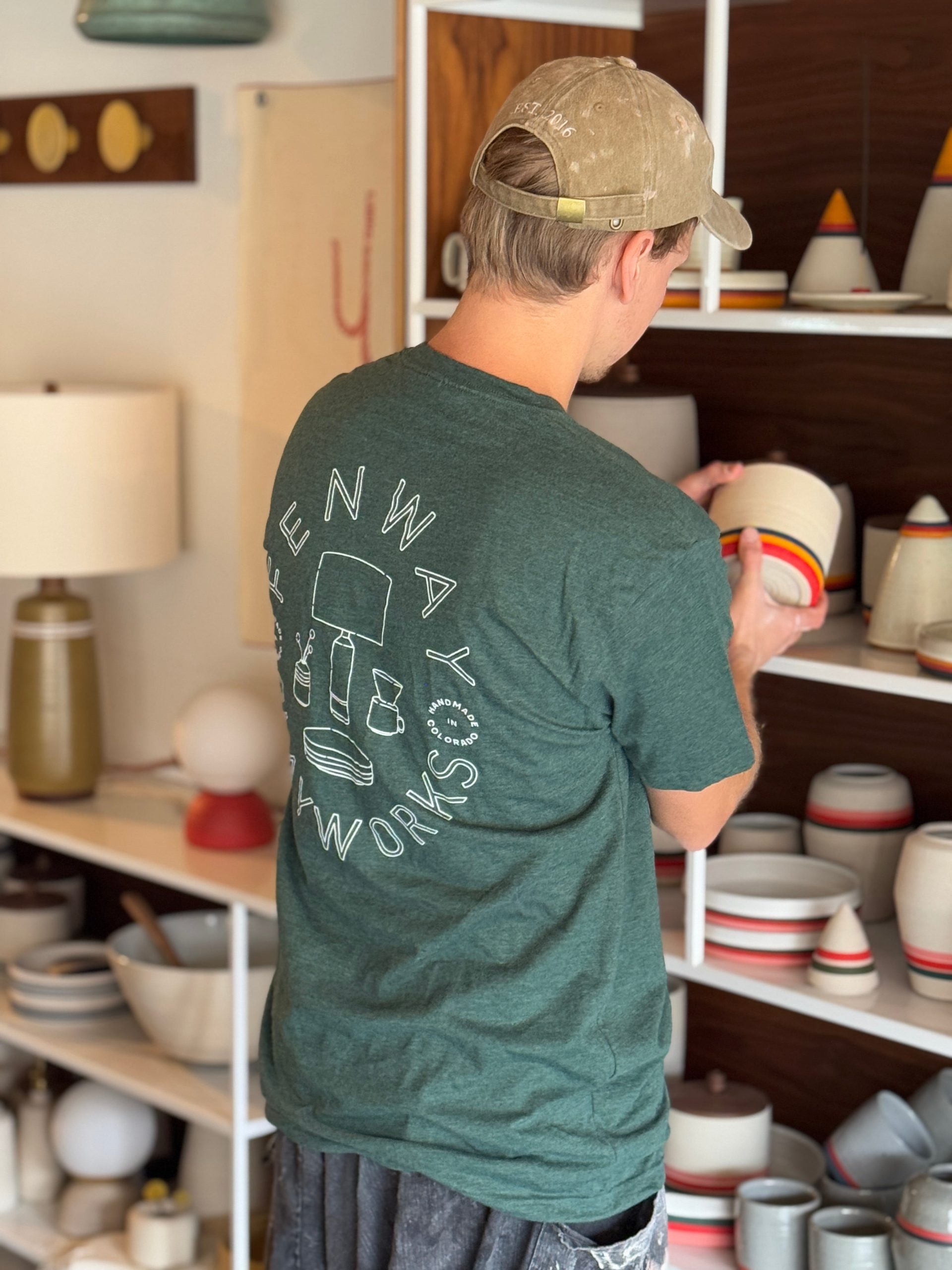 Our classic logo tee in Green. Featuring our logo on the front, and our doodles on the back. The softest tee shirt around – made with with the 60/40 blend from Next Level. If you know, you know.