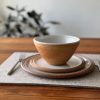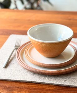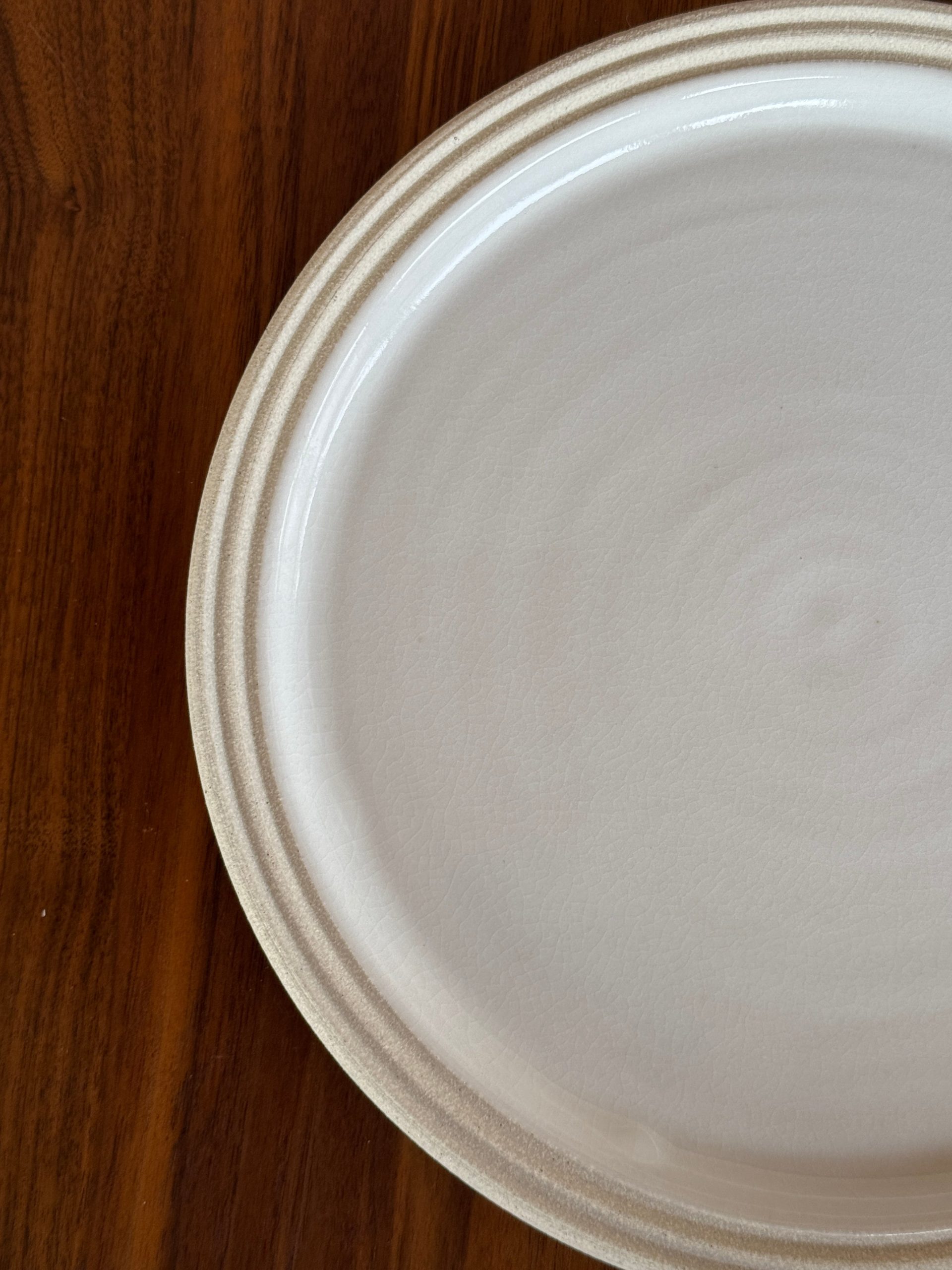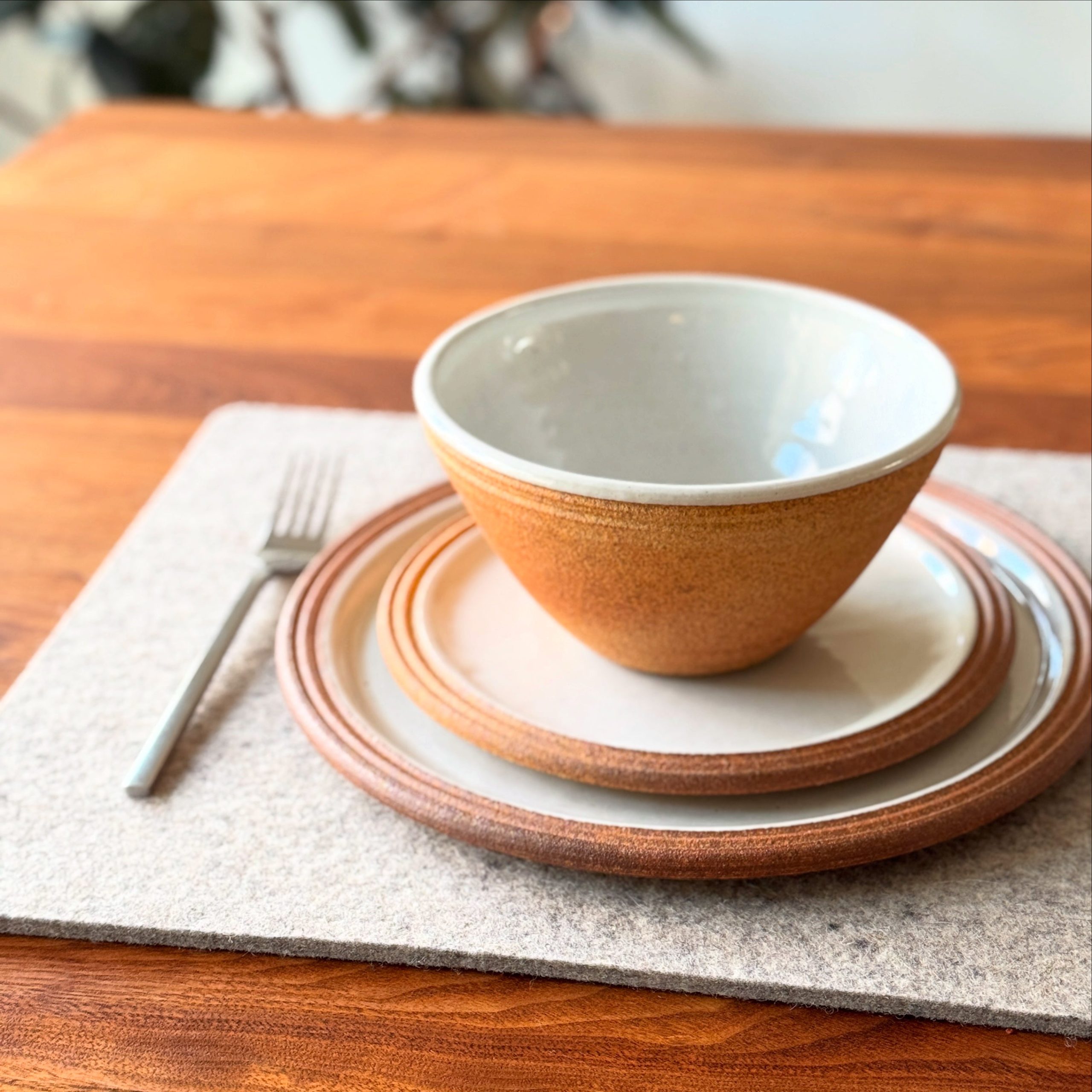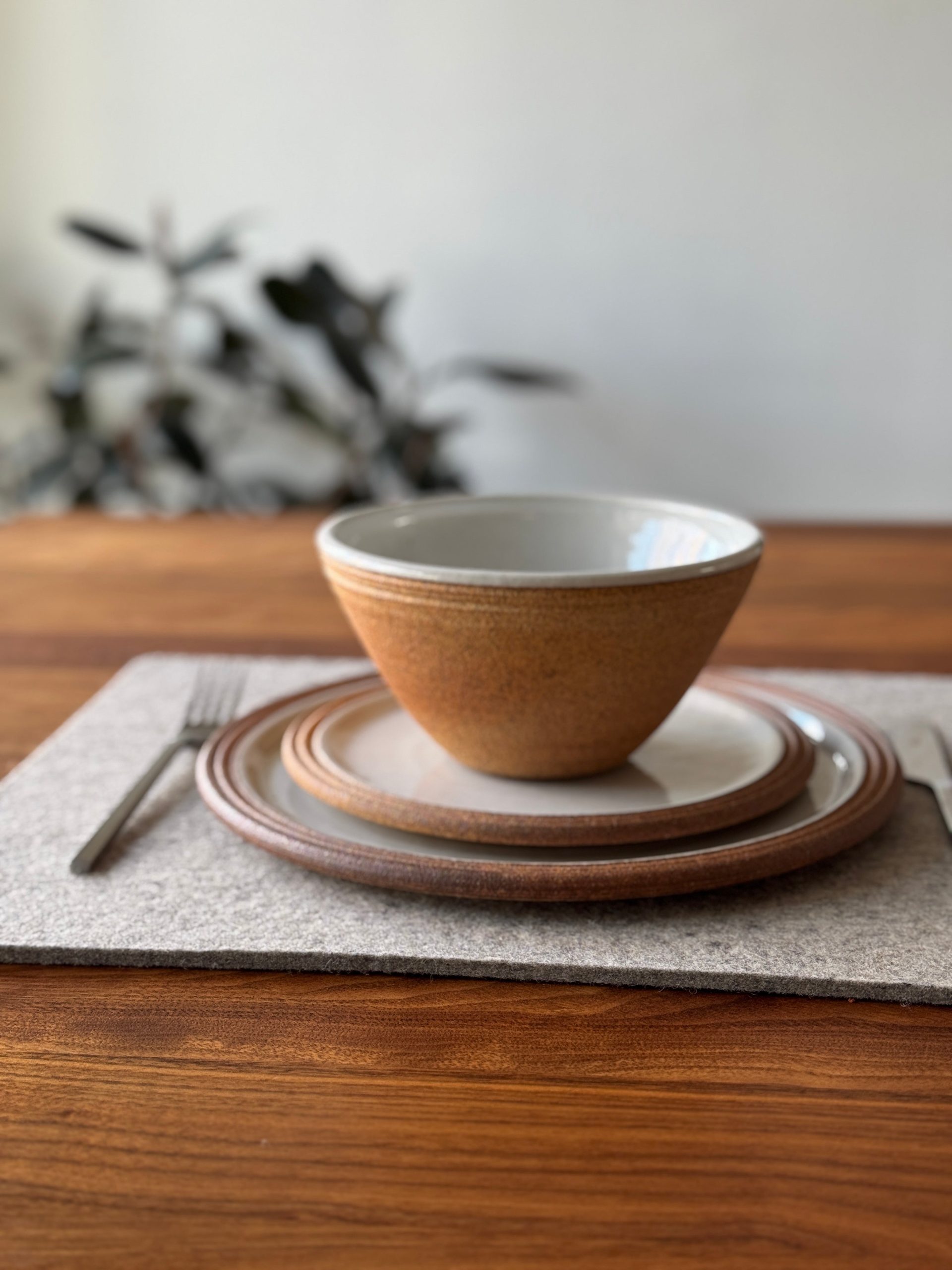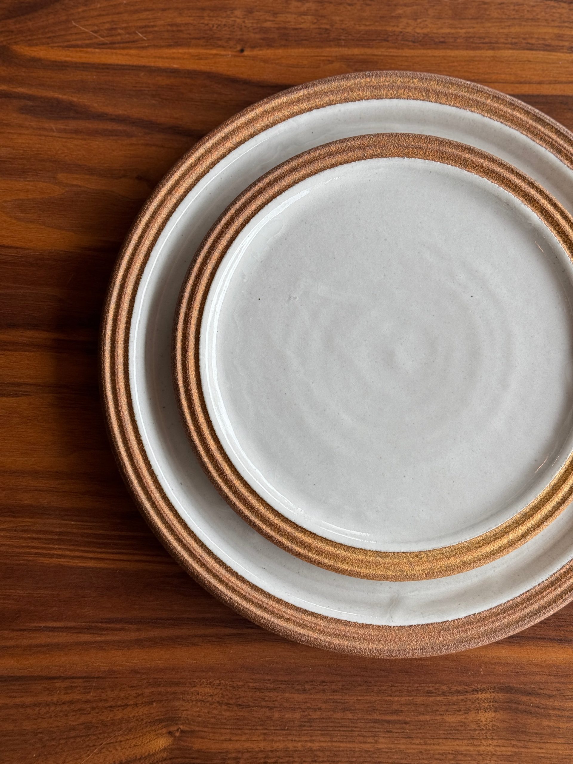 The perfect everyday salad plate. Made specifically with durability and frequent use in mind. Hand thrown on the wheel and then meticulously glazed to keep the textured rim exposed and an interesting visual element. Oven, microwave, and dishwasher safe.