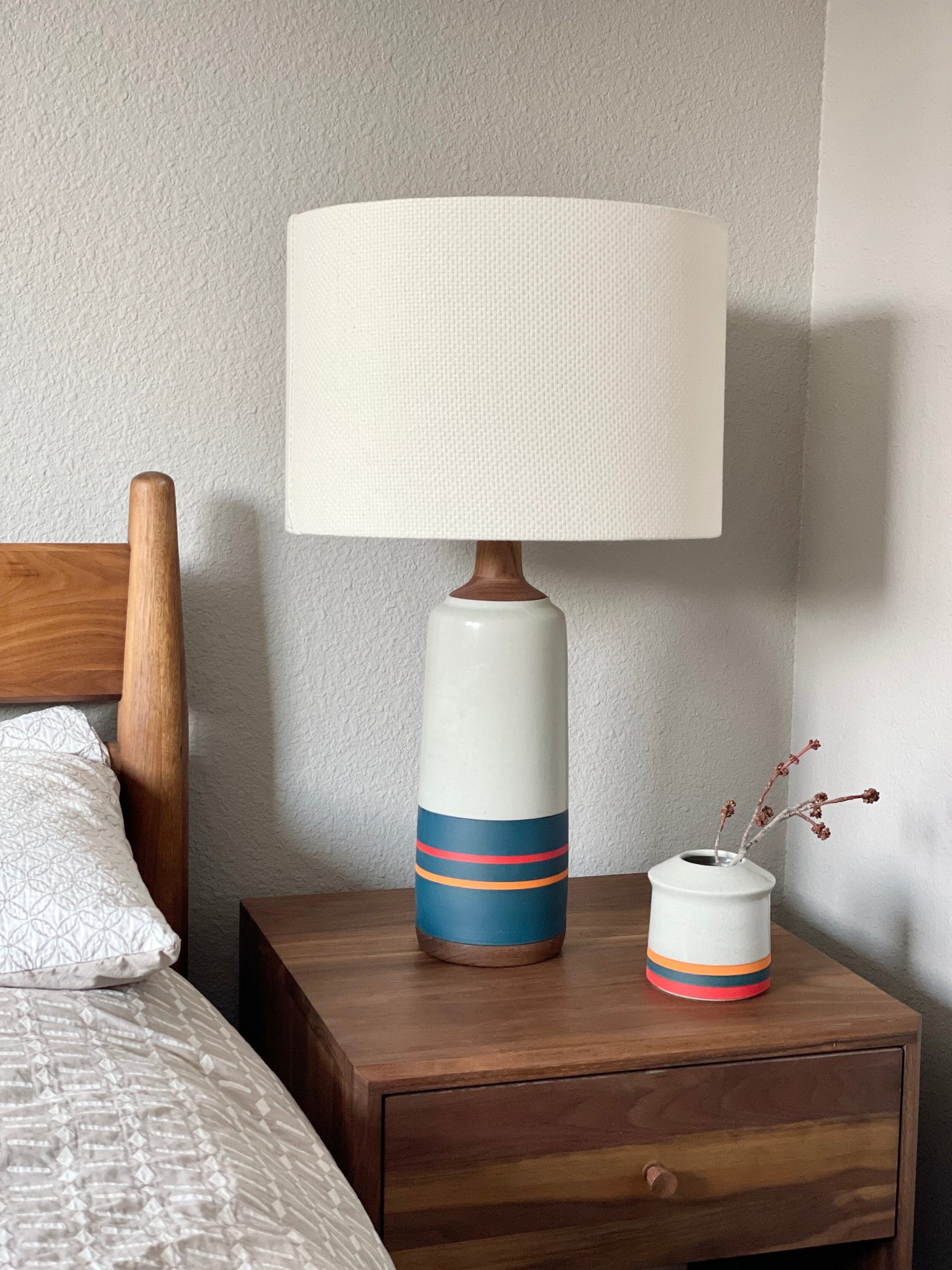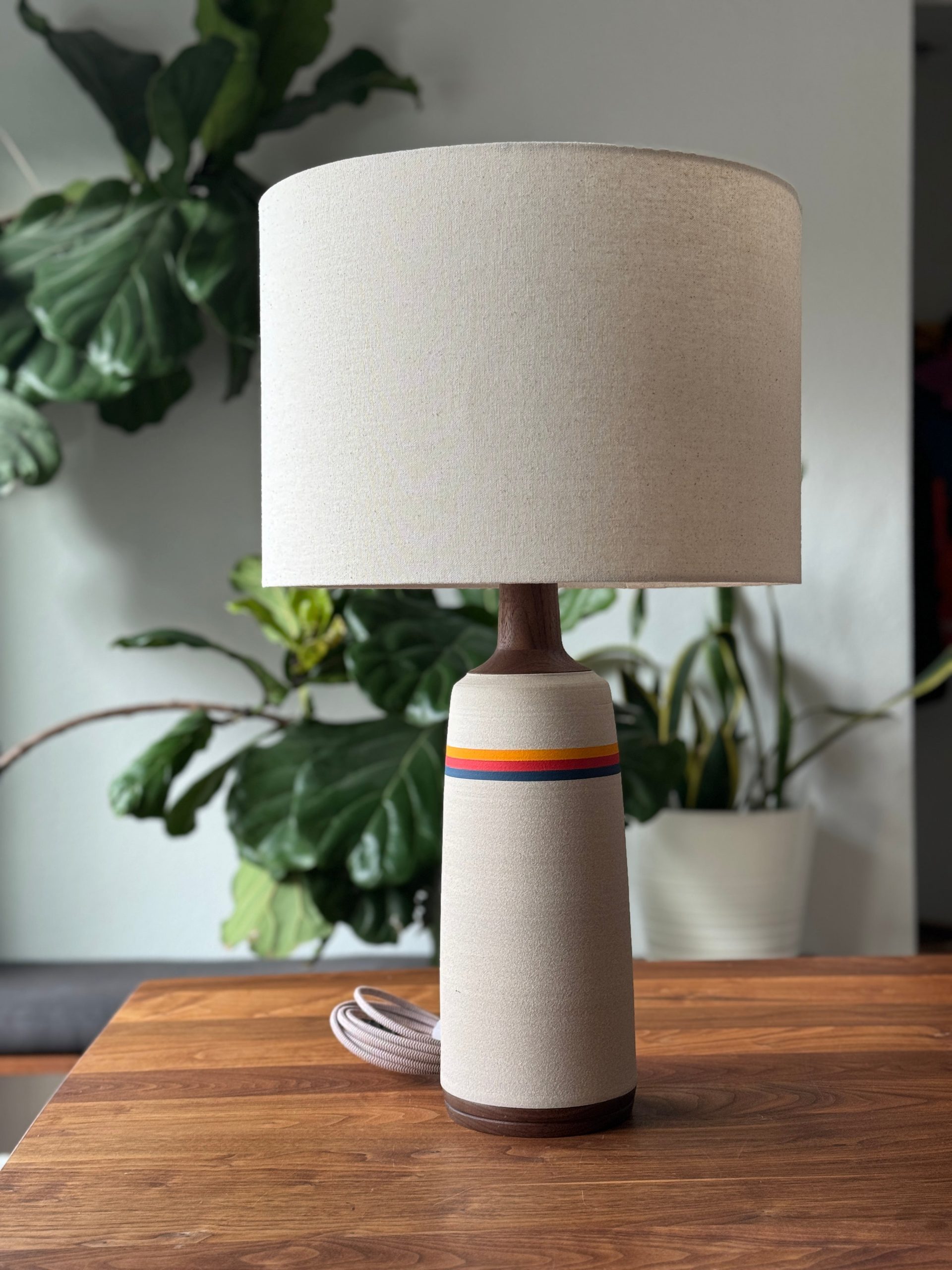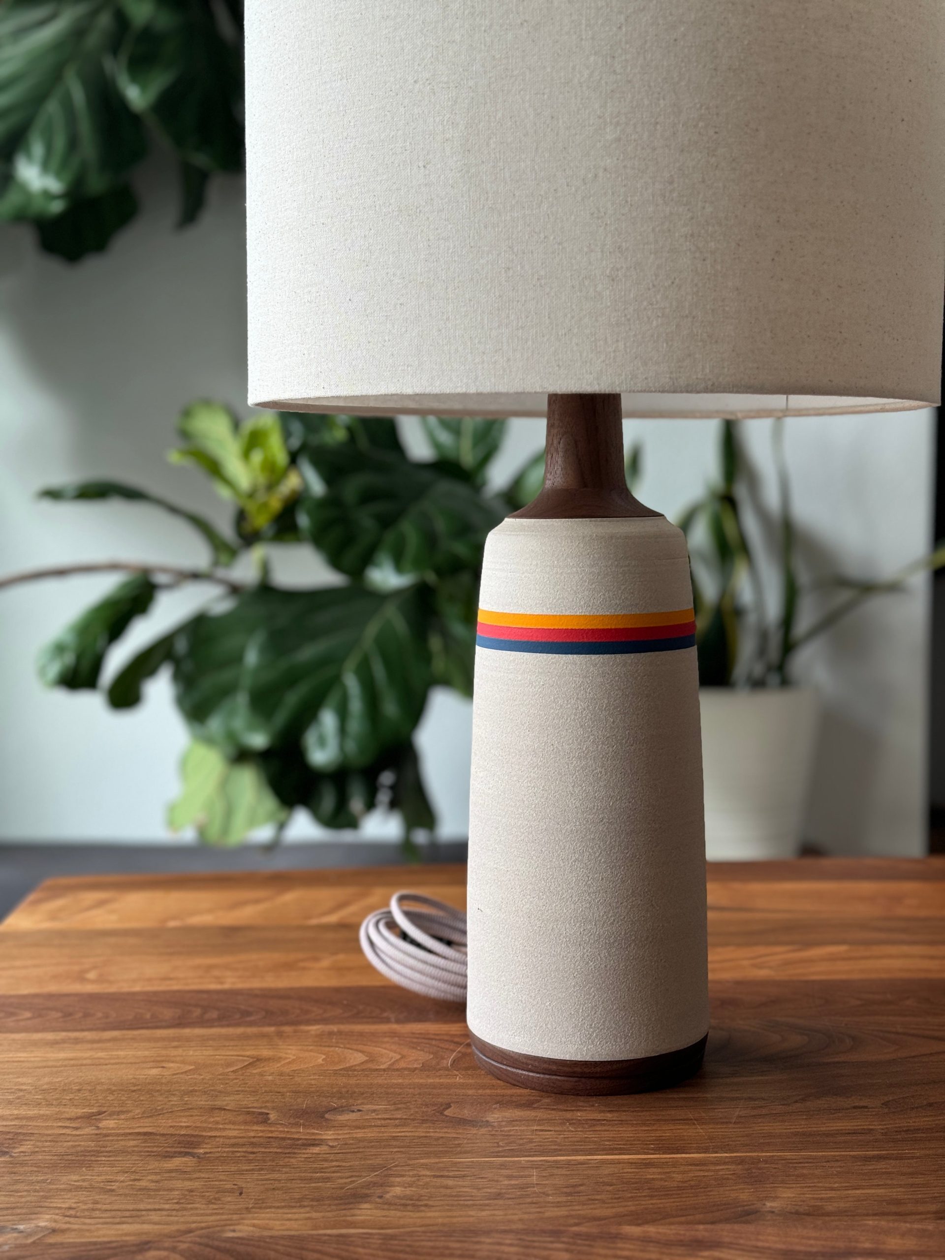 With perfect proportions and intricate walnut neck, this modern lamp is flexible and timeless in design. A quintessential Fenway shape, and offered in our most classic colorways.