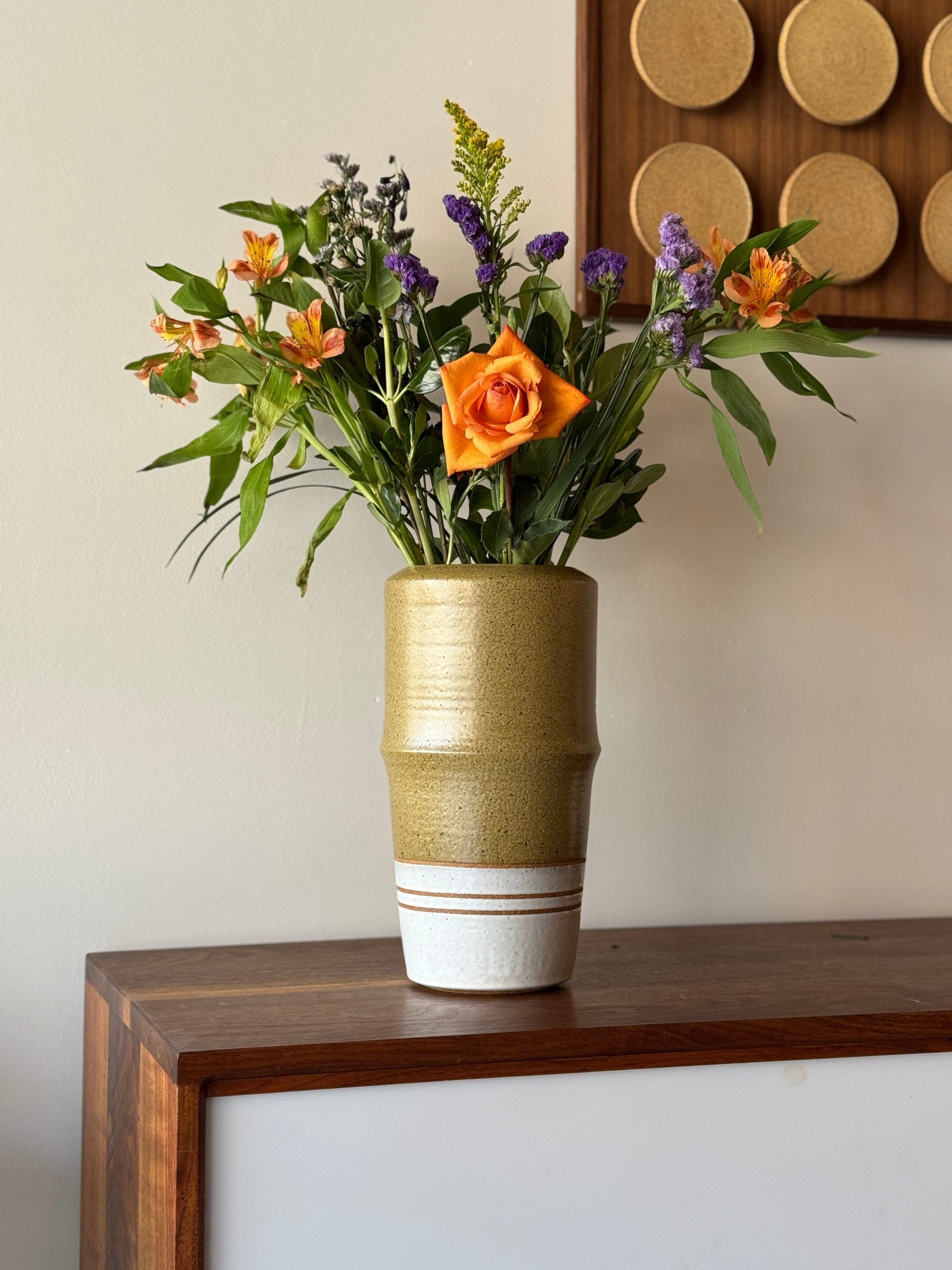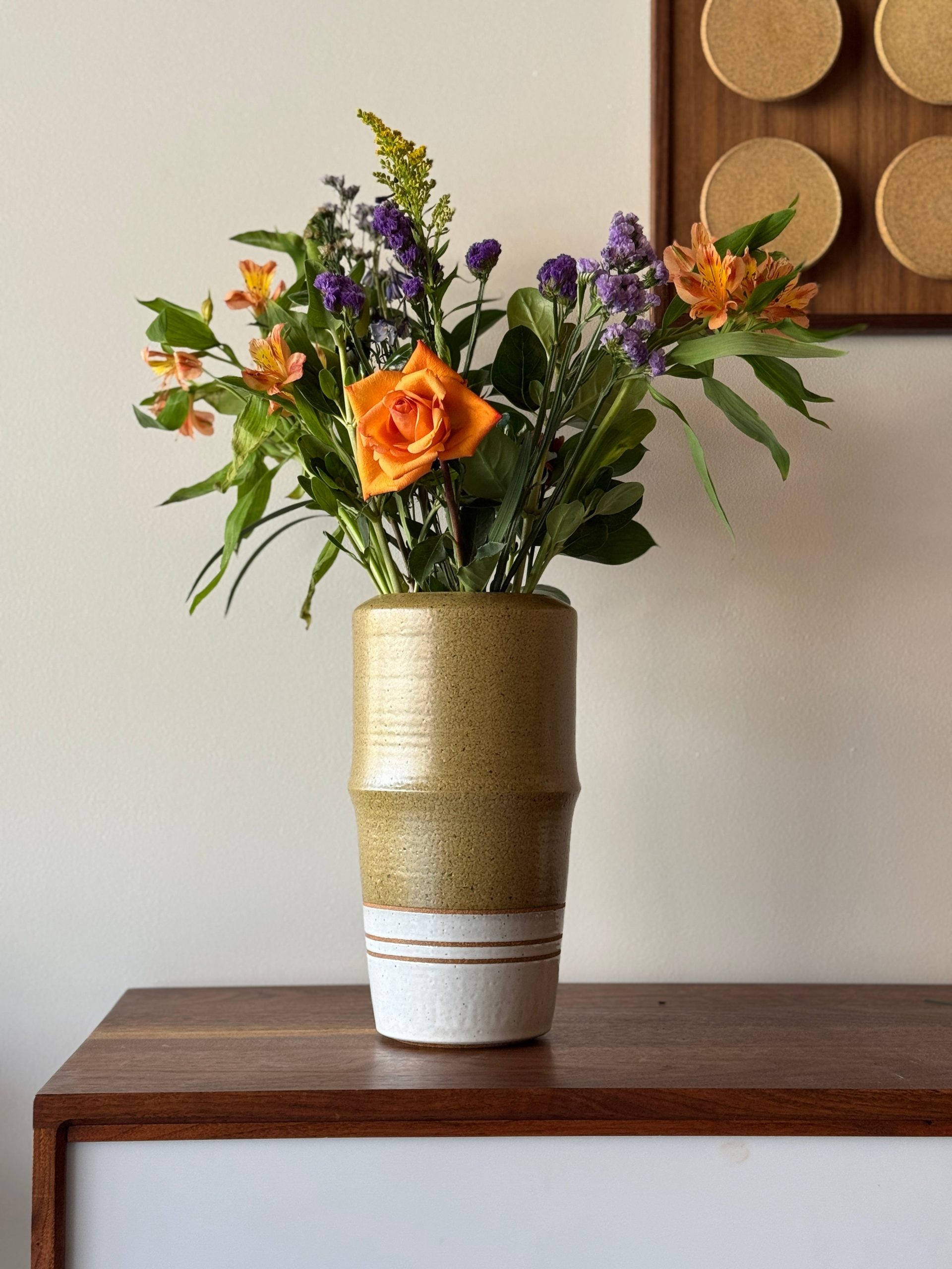 This limited collection of olive and white vases allowed us to experiment with various ridges, profiles, and waves. Each piece includes a new spin on our classic striping design to harken back to our roots. Limited to a collection of four vases.